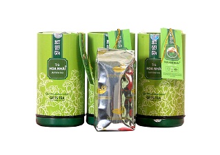 - Là sản phẩm chè xanh ướp hoa Nhài chất lượng cao đóng gói giấy bạc trong hộp thiếc hình tròn, trọng lượng 100 gam .